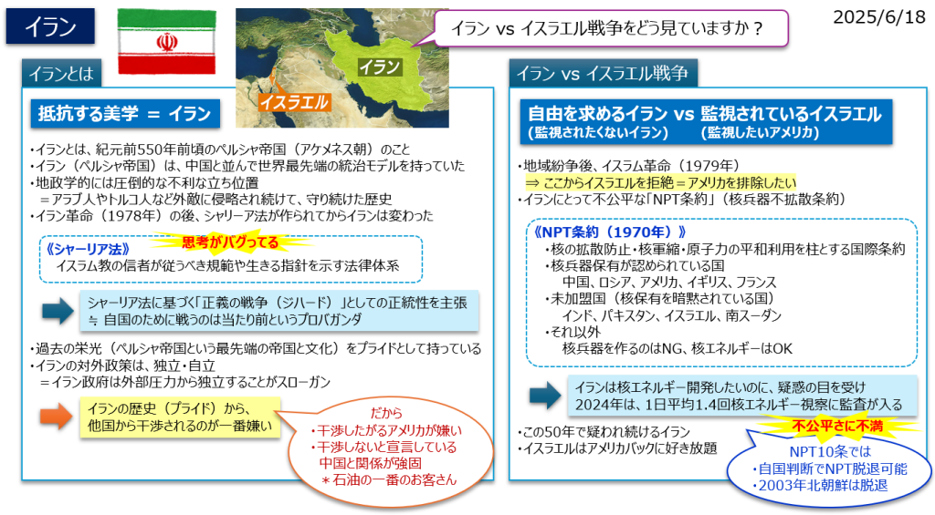 ⇒ イランの歴史(プライド)から、他国から干渉されるのが一番嫌い